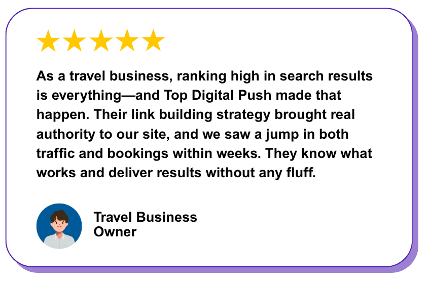 Trusted by SEO professionals worldwide, our approach combines research, relevance, and precision outreach. If you're looking for reliable, results-driven link building, Top DigitalPush delivers the edge you need.
